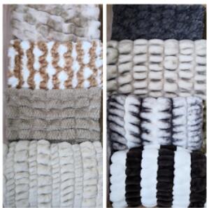 大小兔毛的剪、喷、拧、压、刷等后加工产品:通过花型的变换组合使得每一款产品都是独一无二的。弹力兔毛:面料里面加入氨纶,通过特殊的整理,面料变得更加高档更加美观。仿羊毛:公司研发多款仿羊毛毛毛面料,满足客户需求。